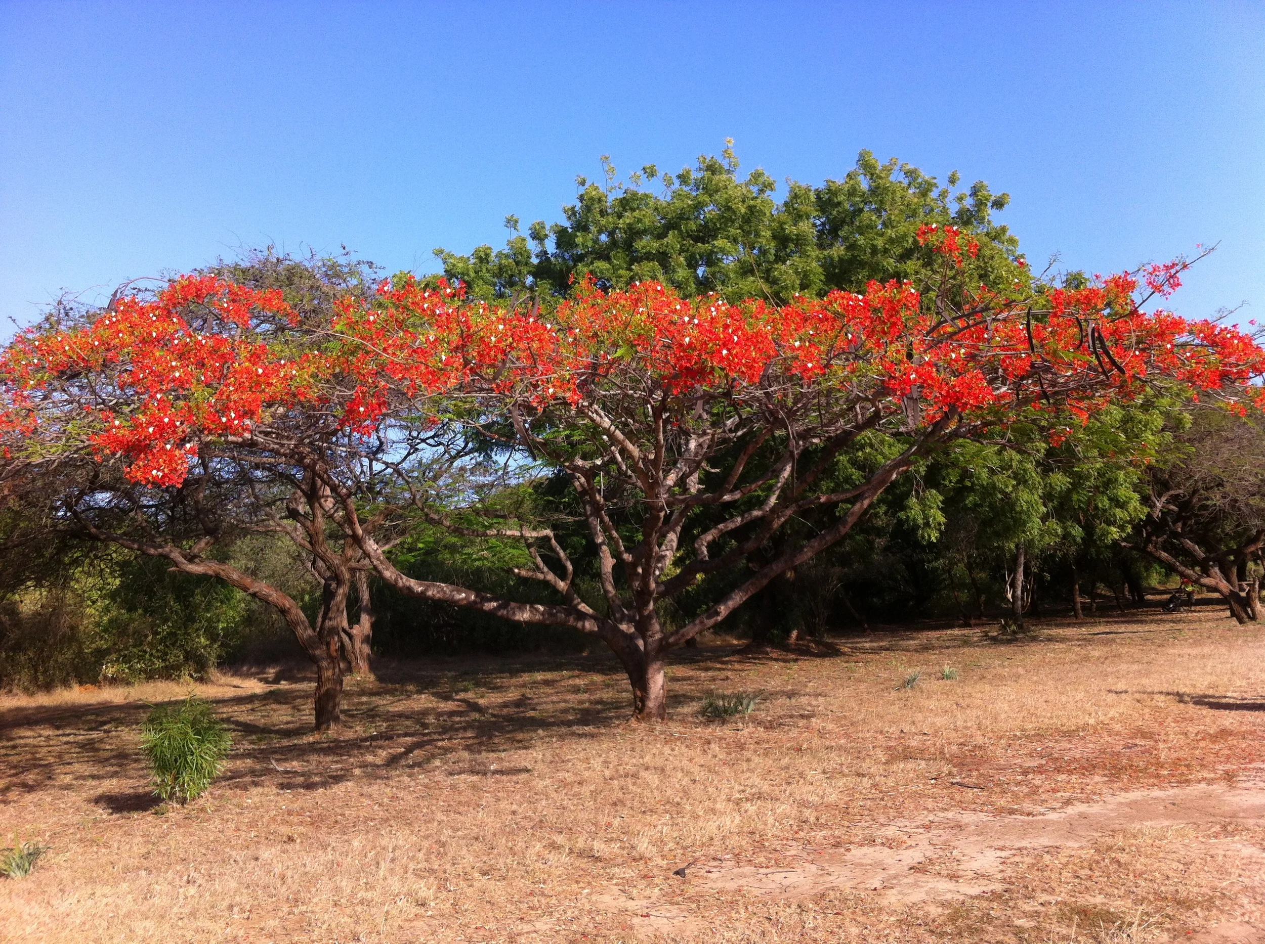 A Flamboyant in bloom beside the fairway.